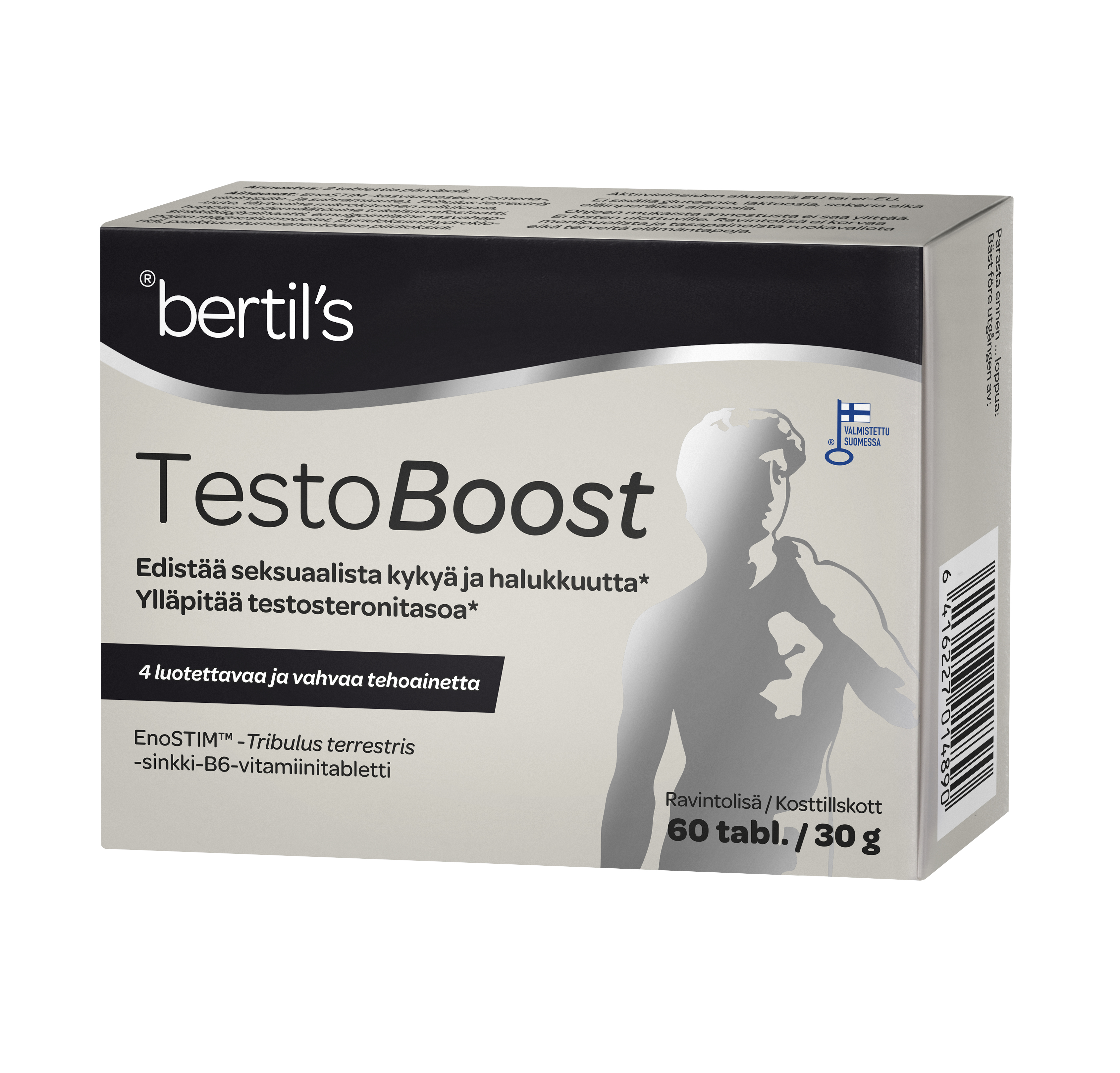 EnoSTIM™ -kasviuuteseos (omena-, viinirypäle- ja sahramiuute (EU)), Tribulus terrestris -uute, täyteaine selluloosajauhe, sinkkibisglysinaatti, happamuudensäätöaine trikalsiumfosfaatti, emulgointiaine rasvahappojen magnesiumsuolat, pyridoksiinihydrokloridi.