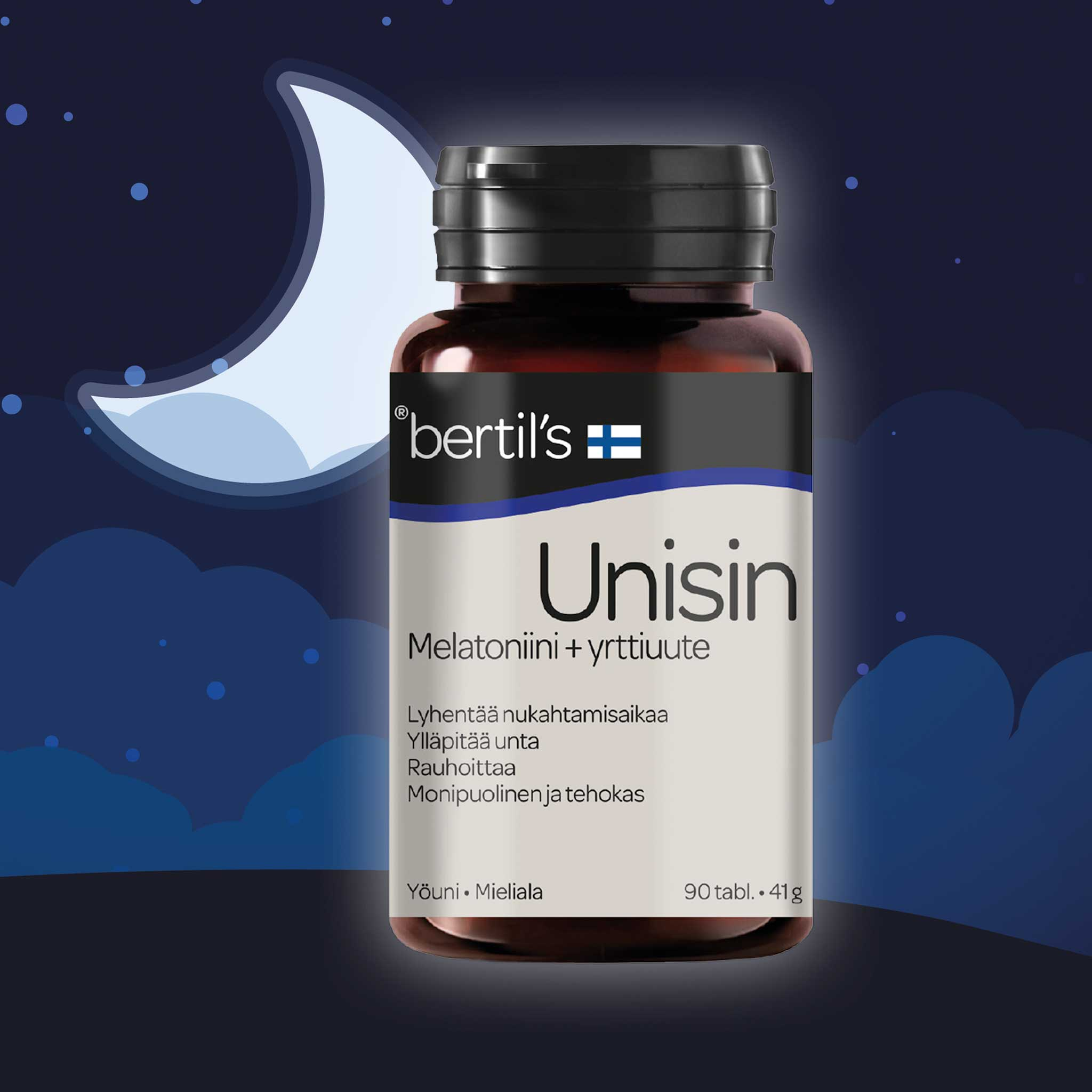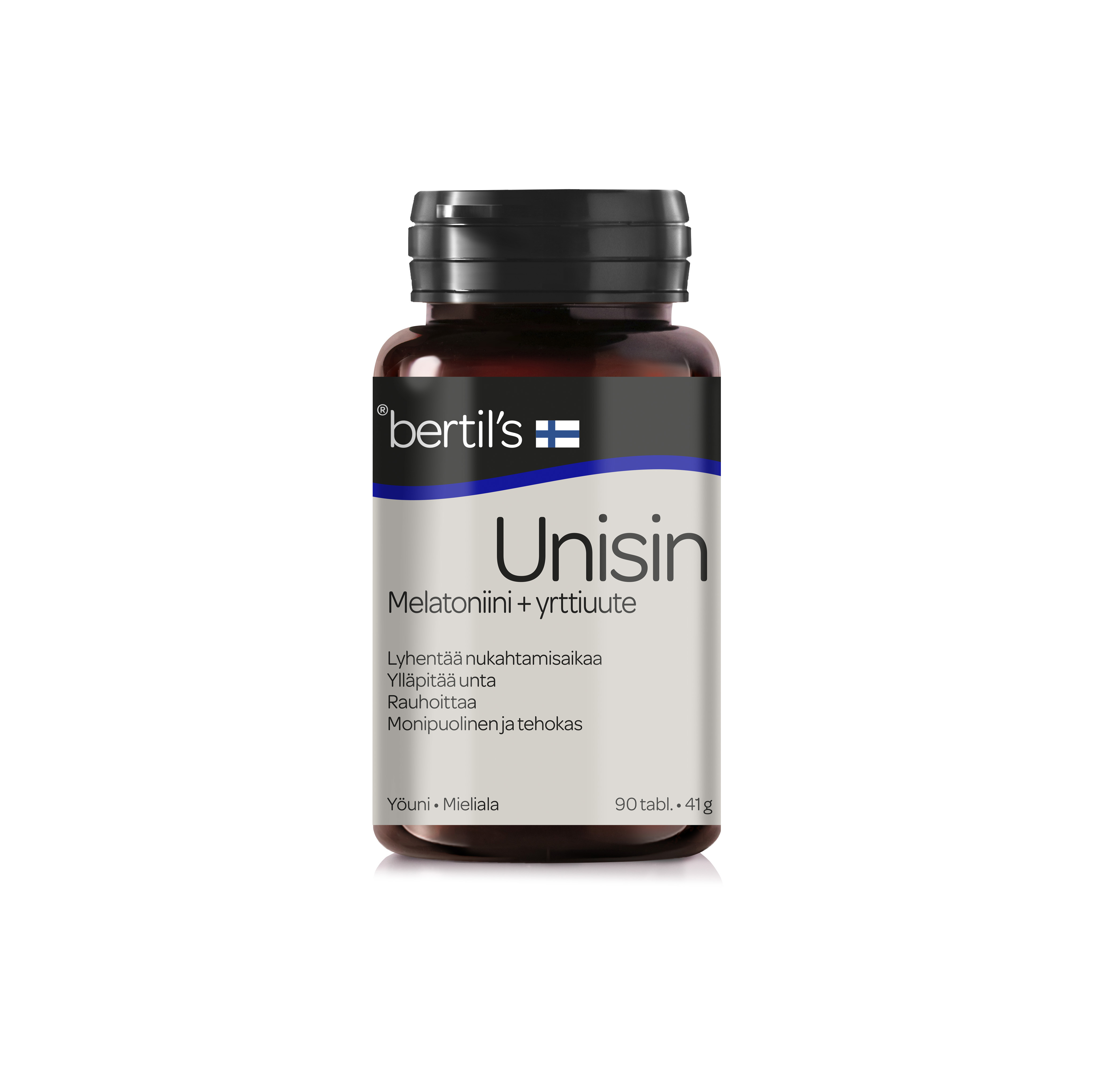 Täyteaine selluloosajauhe, sitruunamelissa (Melissa officinalis) -uute, L-teaniini -uute, kärsimyskukka (Passiflora incarnata) -uute, happamuudensäätöaine trikalsiumfosfaatti, emulgointiaine E470b, melatoniini (ei-EU).